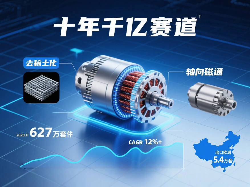 十年千亿电机赛道开启:去稀土、轴向磁通,中国装机+出口齐飙升