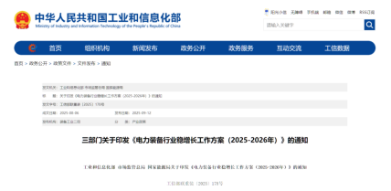 工信部等三部门《电力装备行业稳增长工作方案(2025—2026年)》